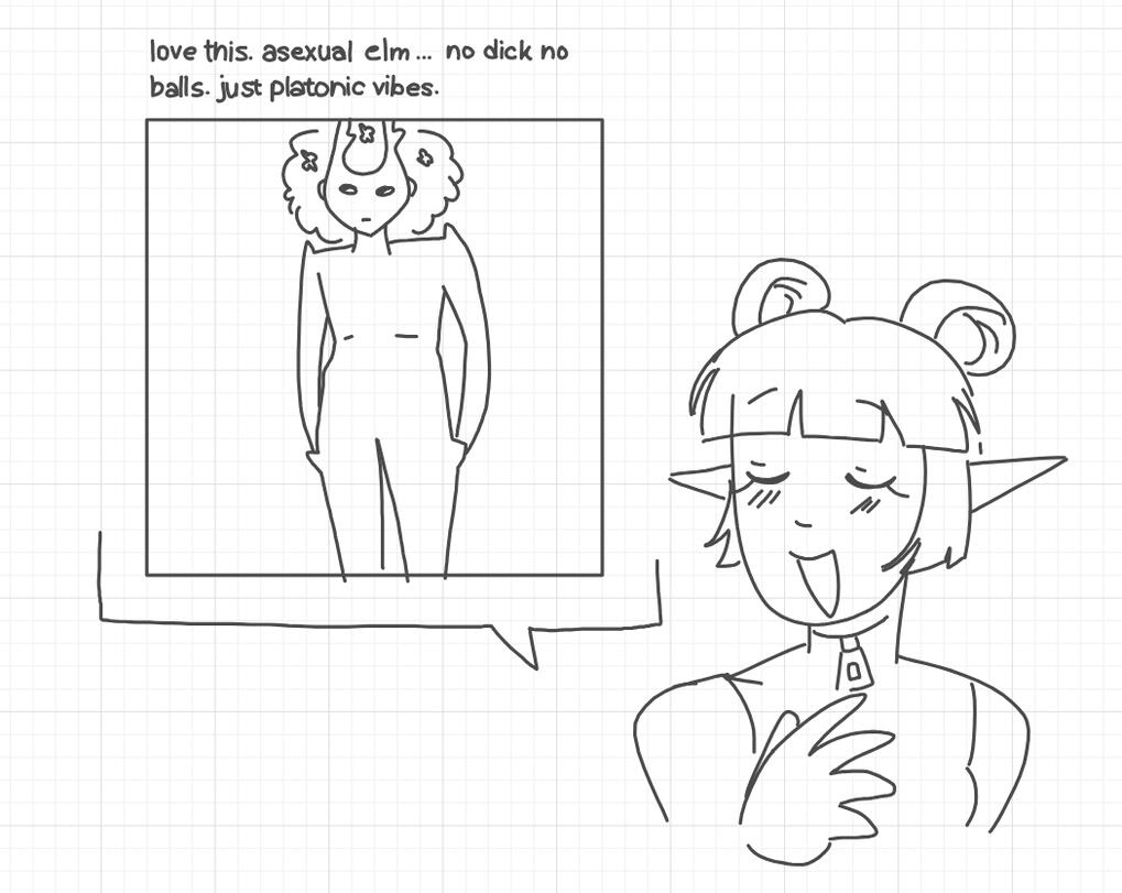 A : It's Elm! They're a character we created rather recently. We'll talk about them soon enough. Also they are indeed hot