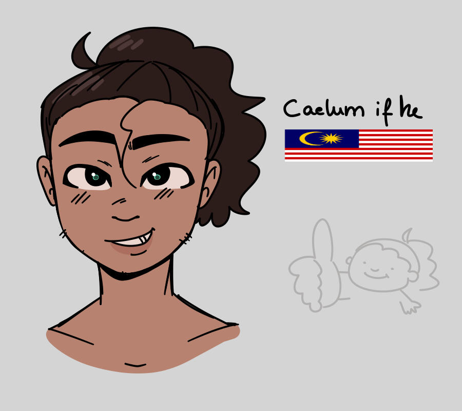 Born as [CENSORED] in Malaysia on Earth1, Caelum's mother was reported as dead when he was 11. No files report a known father. Caelum was recruited into Nebula Space by agent [CENSORED] who found him living in Tokyo when he was 20. He received two distinct surgeries. On one side, he asked for "Gender affirming" Surgery that lead to a torsoplasty, on the other, he was the guinea pig for a brand new eye surgery that could increase his view capacity, linking his vision to a personal database and adding unique functions.